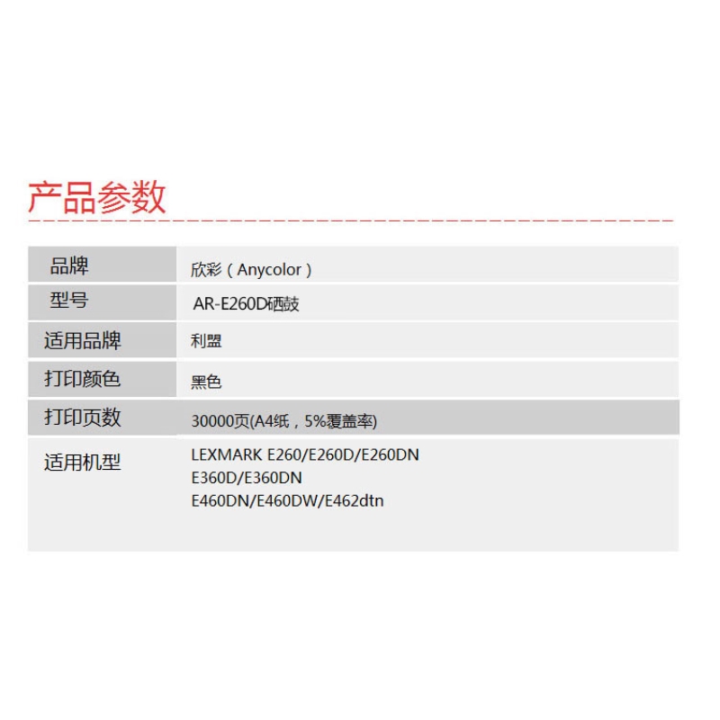欣彩(Anycolor)E260鼓架(專業版)AR-E260D硒鼓 適用利盟E260 X22G LEXMARK E260 E260D E360D E462dtn