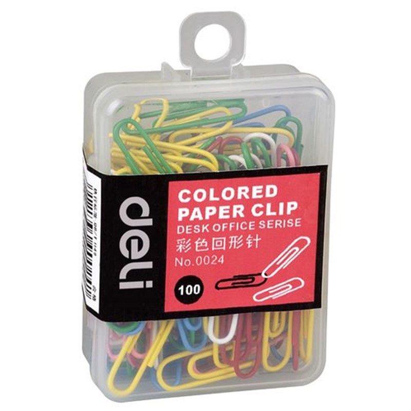 得力 0024 曲別針 彩色回形針辦公分類整理曲別針七彩糖果色萬字夾塑料盒裝100枚
