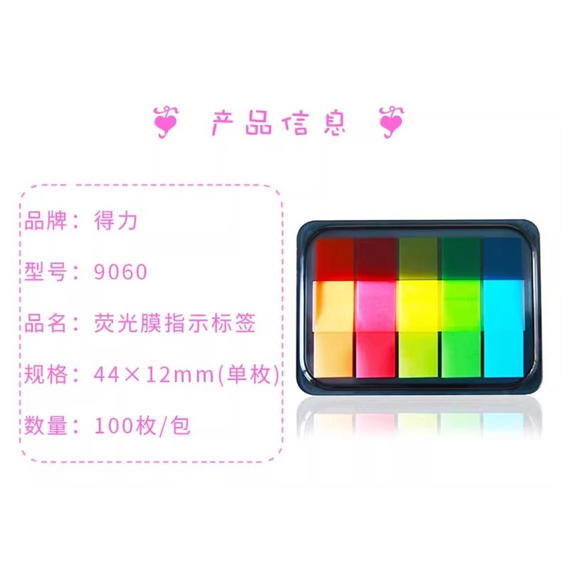 • 得力 9060 記事貼 熒光指示貼標簽抽取式分類貼彩色索引貼小清新便簽貼