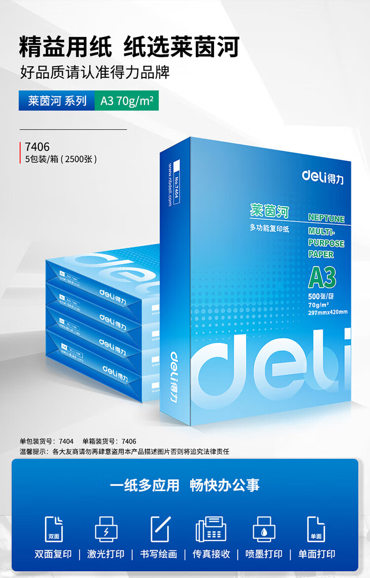 得力/deliA4復印紙70g克50...