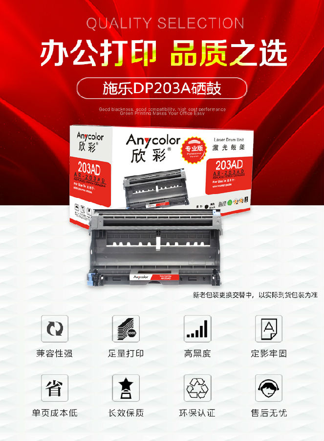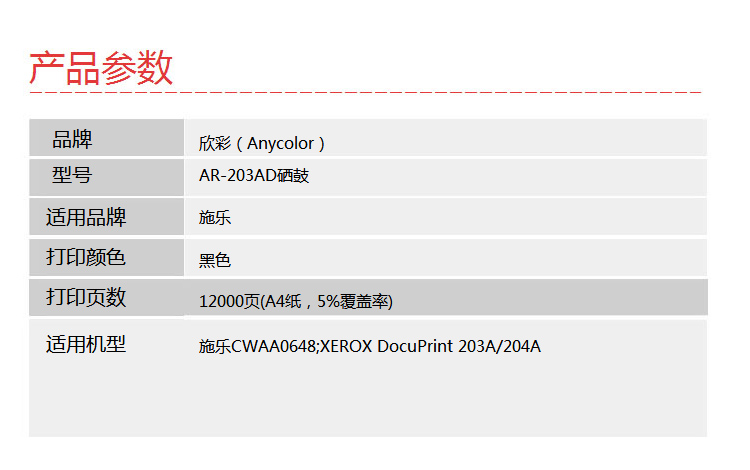欣彩(Anycolor)DP203A硒鼓(專業版)AR-203AD黑色成像鼓 適用施樂CWAA0648 XEROX DocuPrint 203A 204A