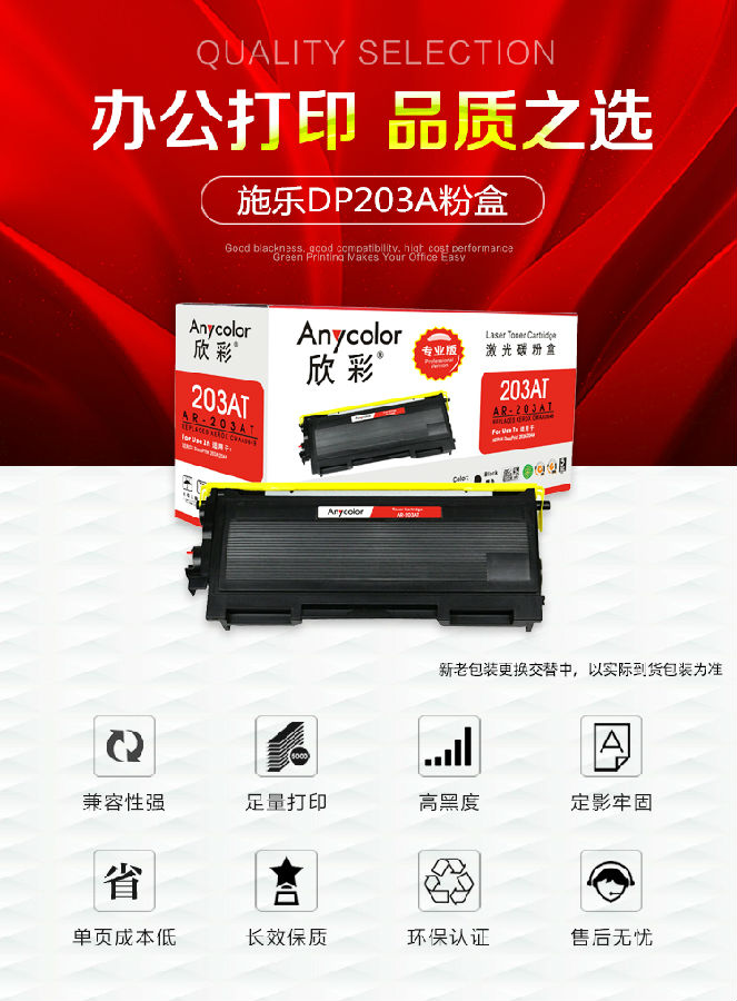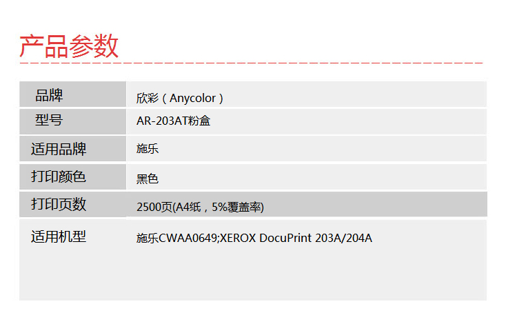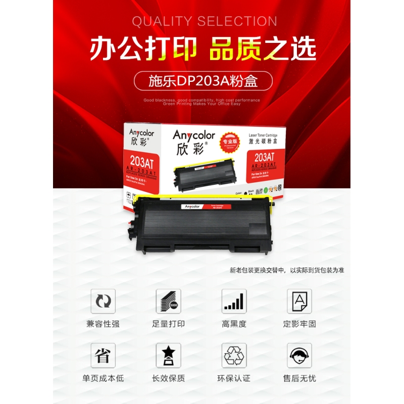 欣彩(Anycolor)DP203A粉盒(專業版)AR-203AT黑色墨粉盒 適用施樂CWAA0649 XEROX DocuPrint 203A 204A