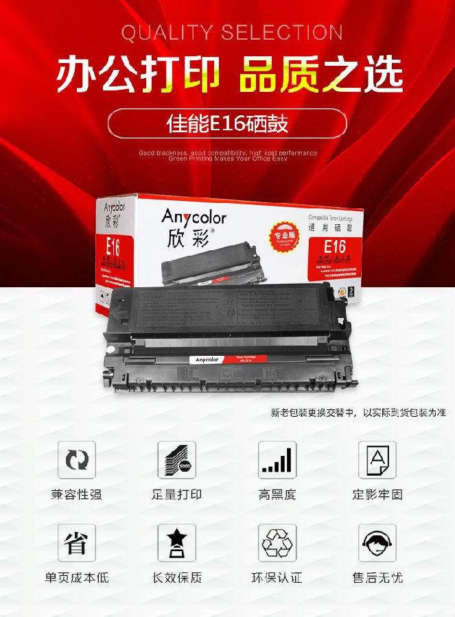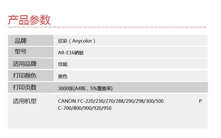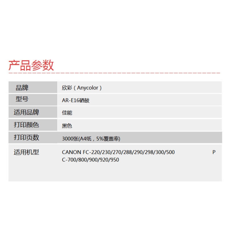 欣彩(Anycolor)E16硒鼓(專業版)AR-E16適用佳能CANON FC-220 230 270 288 290 298 300 500 PC-700